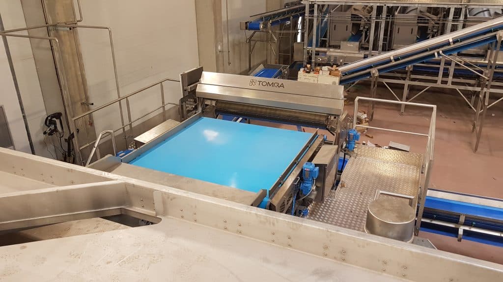 Designed to guarantee even, controlled distribution of the product, This vibratory conveyor efficiently prepares the feed for your equipment positioned in right-angled such as fans, blanchers, optical sorters and other process machines.