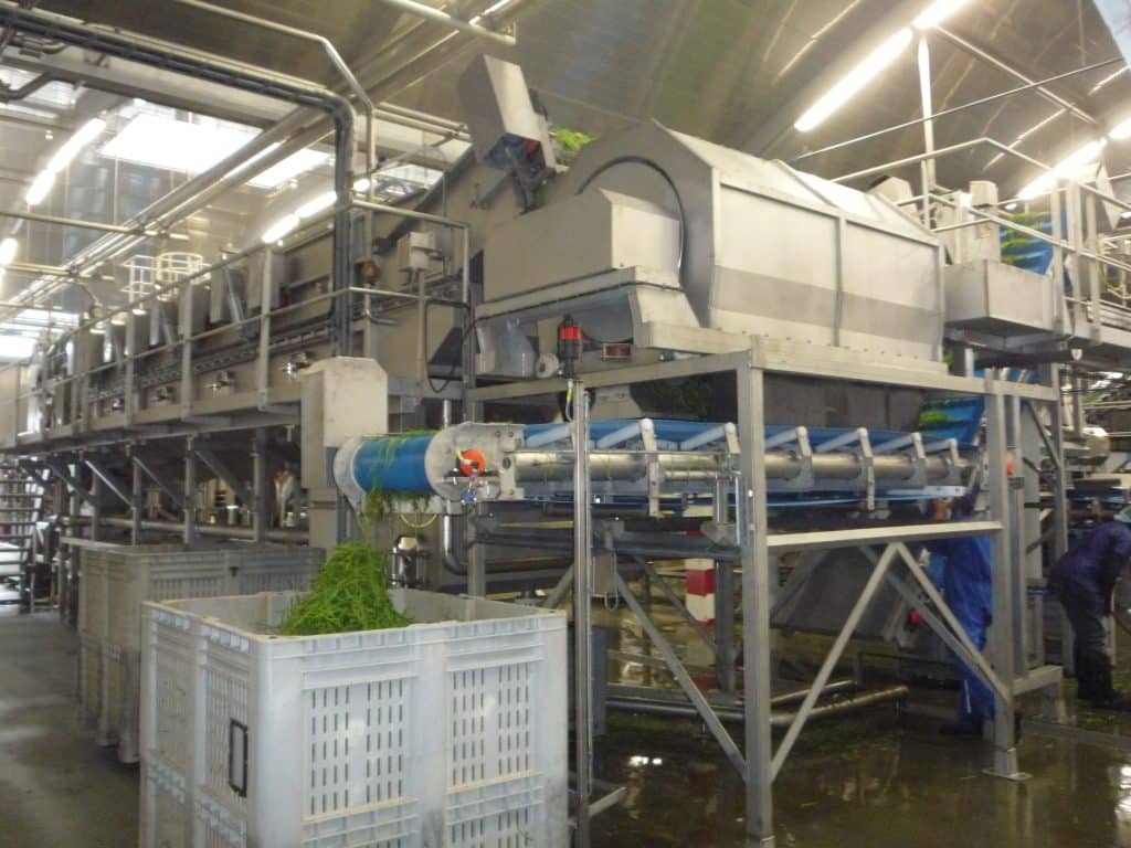 Funciona de forma independiente o en cascada (2 ó 3 máquinas) para un ciclo completo: prelavado, lavado/desbacterización, aclarado con agua clara (ideal para productos frágiles y hierbas aromáticas).